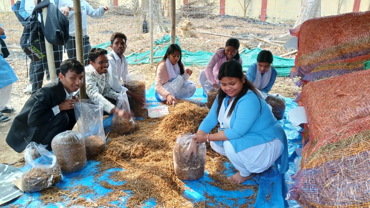 ২ মাৰ্চ, ২০২৬ তাৰিখে যোৰহাটৰ বেচৰকাৰী সংস্থা 'কৃষ্টিৰ কঠীয়া'ৰ উদ্যোগ তথা তেল আৰু প্ৰাকৃতিক গেছ নিগমৰ(ONGC) সহযোগত সৰুপথাৰ মহাবিদ্যালয়ত এটি কাঠফুলা(মাশ্বৰুম) উৎপাদন কেন্দ্ৰ আৰম্ভ কৰা হয়। এই কাৰ্যসূচীত মুখ্য অতিথি হিচাপে উপস্থিত থকা শ্ৰীপ্ৰদ্যুম্ন বৰাই ছাত্ৰ-ছাত্ৰীসকলক কাঠফুলাৰ উপকাৰিতাৰ লগতে উপাৰ্জনৰ এক লাভজনক আহিলা হিচাপে বিস্তৃত বৰ্ণনা আগবঢ়ায়। ছাত্ৰ-ছাত্ৰীসকলে অতি উৎসাহেৰে এই প্ৰশিক্ষণ কাৰ্য্যসূচীত অংশগ্ৰহণ কৰে। মহাবিদ্যালয়ৰ শিক্ষক ড০ সন্ধান হাজৰিকাই আঁত ধৰা এই কাৰ্যসূচীত অধ্যক্ষ ড০ প্ৰাপ্তি ঠাকুৰ, ড০ ববিতা দত্ত, ৰিণি বেনাৰ্জী, জেৰী টিমুংপীৰ লগতে প্ৰকল্প সমন্বয়ক প্ৰাচুৰ্য বৰা, সমল-ব্যক্তিদ্বয় কাকুমণি শইকীয়া আৰু প্ৰবীণ বৰা উপস্থিত থাকে । তেওঁলোকে ছাত্ৰ-ছাত্ৰীসকলক কাঠফুলা উৎপাদনৰ প্ৰাৰম্ভিক কৌশল আৰু বিজ্ঞানসন্মত পদ্ধতিসমূহৰ বিষয়ে চমু আভাস দিয়ে। প্ৰশিক্ষণ কেন্দ্ৰটোৰ প্ৰথম দিনৰ কাৰ্যসূচীত মহাবিদ্যালয়ৰ শতাধিক ছাত্ৰ-ছাত্ৰীয়ে অতি উৎসাহেৰে অংশগ্ৰহণ কৰে। থলুৱা পদ্ধতিৰে কেনেকৈ কম সময়ৰ ভিতৰত কাঠফুলা উৎপাদন কৰি উৎপাদনমুখী হ’ব পাৰি, সেই বিষয়ত ছাত্ৰ-ছাত্ৰীসকলে যথেষ্ট কৌতুহল প্ৰকাশ কৰা পৰিলক্ষিত হয়।